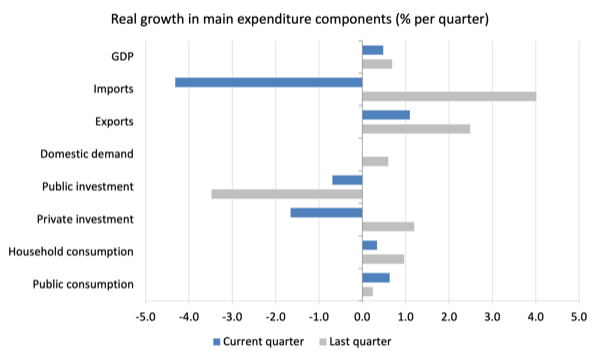 2. Private investment expenditure subtracted -0.3 points (after adding 0.2 points last quarter).
