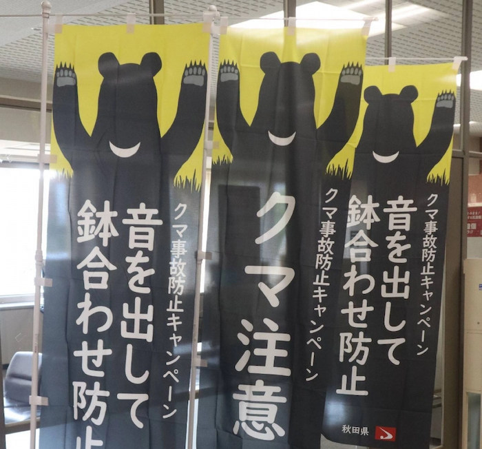 Signs like this one are going up around Japan in government buildings warning people to look out for bears.