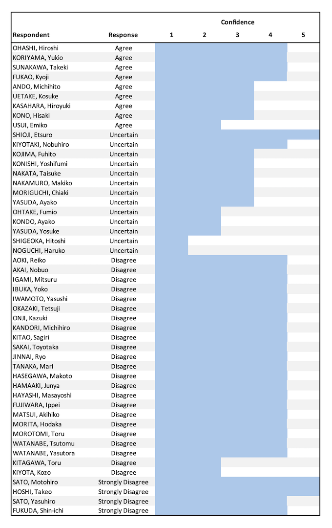 There are 50 respondents on the current panel (all Japanese) and drawn from university departments around the world.