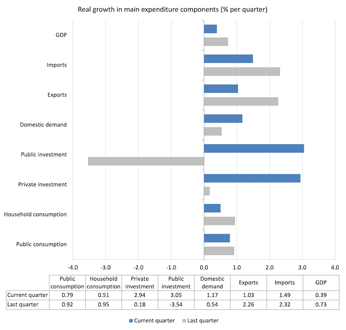Household consumption expenditure growth weakened while public and private investment was stronger.
