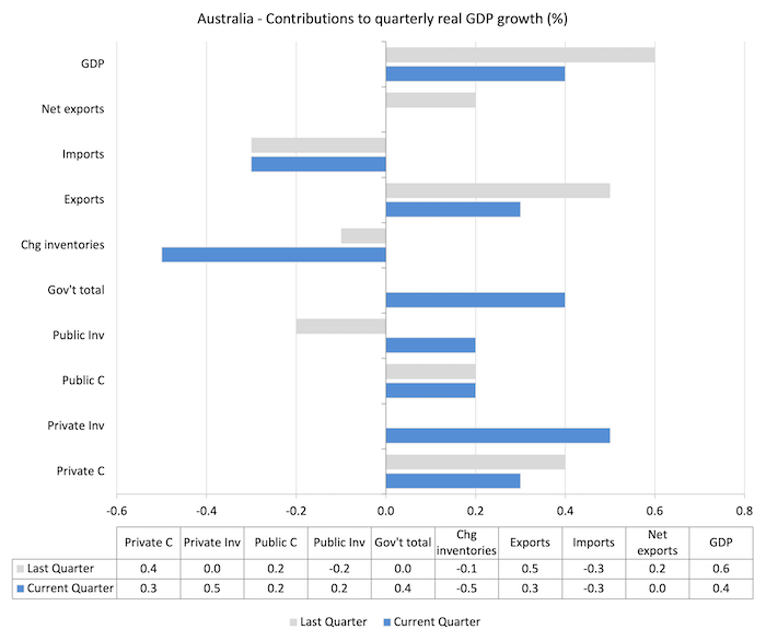 The 0.4 point overall government contribution was the difference between zero growth and the positive result recorded.