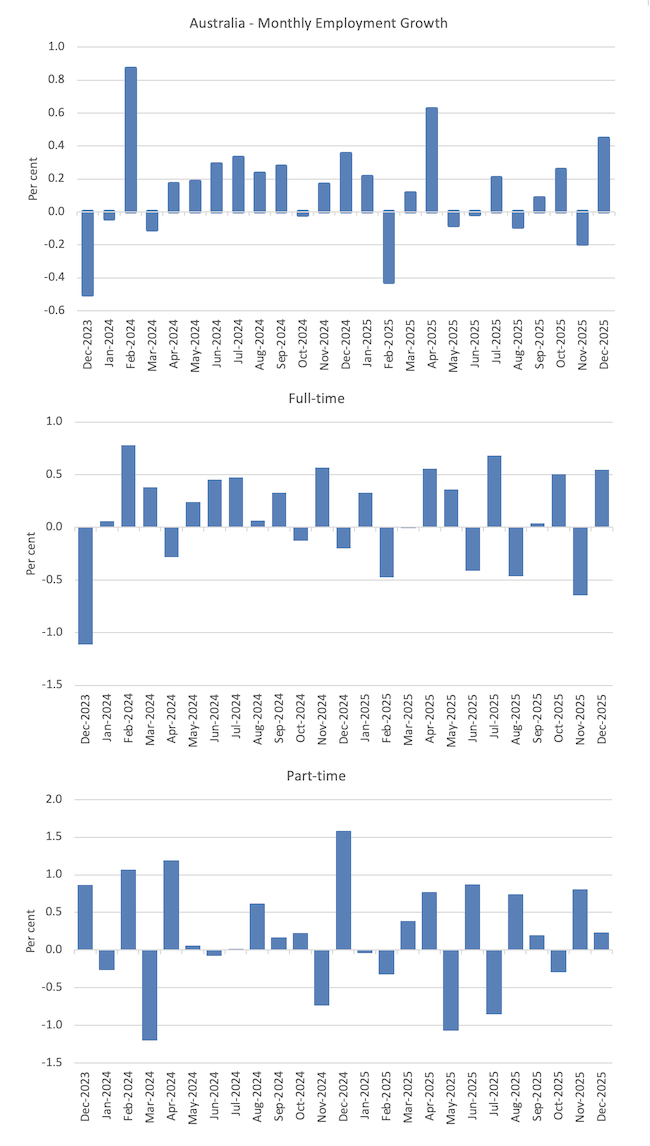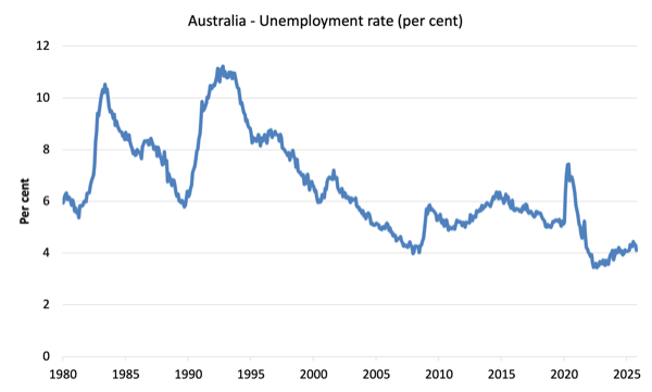 Today (January 22, 2026), the Australian Bureau of Statistics (ABS) released the latest labour force data – Labour Force, Australia – for December 2025 – which showed a relatively strong increase in employment and the rising participation rate – both good signs. Taken together the demand-side of the labour market outstripped the growth in the working age population and, as a result, unemployment fell. The increase in employment was concentrated on full-time employment, which meant that working hours rose and underemployment fell significantly.meant that only a modest decrease in unemployment was recorded. Howebver, the reality is that it is nonsensical to argue that Australia being close to full employment.