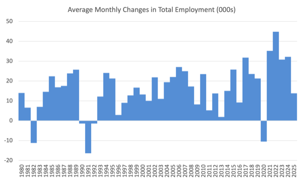 For total employment the monthly average changes were: