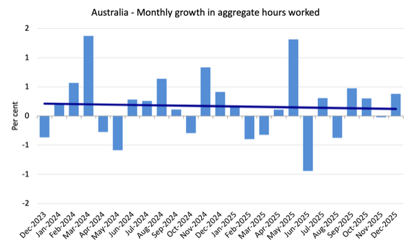 Monthly hours worked rose 7.6 million (0.38 per cent) in December 2025