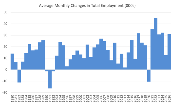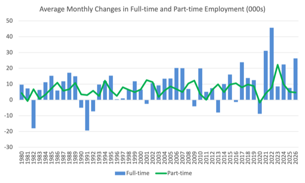 The next graphs show the average monthly change in total employment (first graph) and full- and part-time employment (second graph).